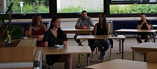 109 Schülerinnen und Schüler aus dem Ernährungswissenschaftlichen, Sozialwissenschaftlichen und Technischen Gymnasium haben an der Bertha-Benz-Schule in herausfordernden Zeiten die allgemeine Hochschulreife erworben. Die Herausforderung die Abiturzeugnisse den Absolventen ohne Abiturfeier, aber doch in einem festlichen Rahmen zu übergeben, haben Lehrerinnen, Lehrer und die Schulleitung der Bertha-Benz-Schule gemeistert. Im eigens dafür hergerichteten Lehrerzimmer versammelten sich nacheinander die sechs Klassen des Beruflichen Gymnasiums. So war es für die Abiturienten möglich, diesen besonderen Tag in ihrem Klassenverbund zu begehen. Für das Schulleitungsteam bedeutete es, sechsmal hintereinander denselben Ablauf zu vollziehen.