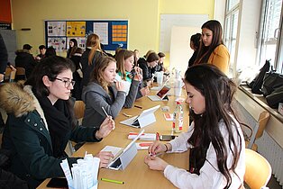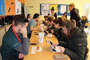 Lukas Weber wies die Schülerinnen und Schüler in die Durchführung der Typisierung ein. Neu war die Registrierung der Spender mithilfe von Tablets, die eine unkomplizierte Erfassung der Daten ermöglichten. Den Abstrich der Wangenschleimhaut mit einem Stäbchen führten die potentiellen Spender selbst durch und damit war die Aufnahme in die Spenderdatei der DKMS schon fertig. Jetzt bleibt zu hoffen, dass vielleicht wieder ein lebensrettender Spender gefunden wird.