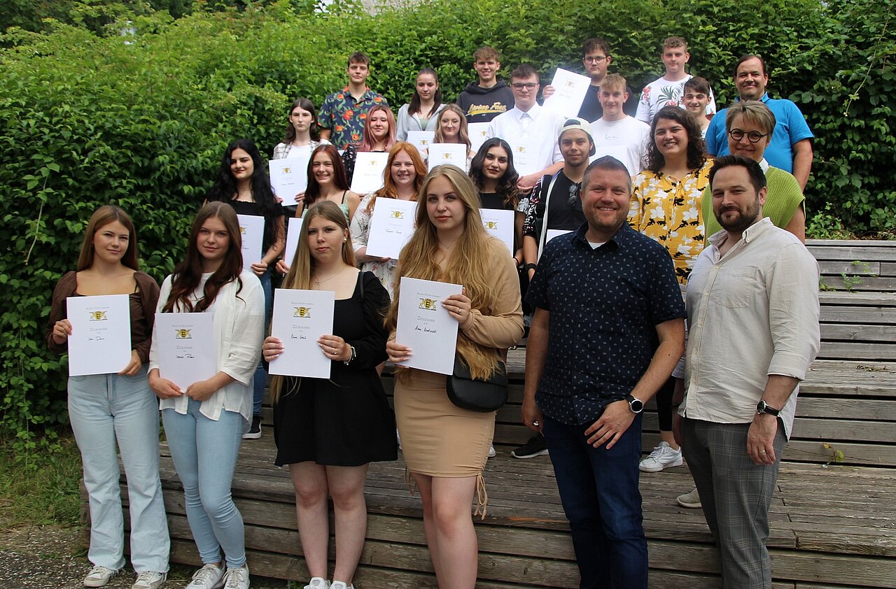 Schulleiter Christian Roth verabschiedete die Absolventinnen und Absolventen gemeinsam mit den Klassenlehrerinnen und Klassenlehrern. Die jungen Erwachsenen hätten mit dem Abschluss nicht nur die mittlere Reife erreicht, sondern sich auch zu Experten in einem Fachgebiet qualifiziert. „Darauf können Sie stolz sein“, stellte der Schulleiter anerkennend fest. Er forderte alle auf, sich nicht auf diesem Erfolg auszuruhen, sondern immer am Ball zu bleiben und niemals mit dem Lernen aufzuhören.
