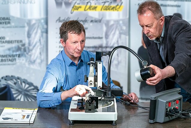Ausbildung auf hohem technischen Niveau – diesen Anspruch verfolgt die Bertha-Benz-Schule in Kooperation mit den dualen Partnern der Industrie. Mit einem optischen Messgerät, das die Firma Gühring der Schule zur Verfügung stellt, kann dieser Anspruch in der Ausbildung von Zerspanungs- und Industriemechanikern und auch im Technischen Gymnasium und der Berufsfachschule umgesetzt werden.