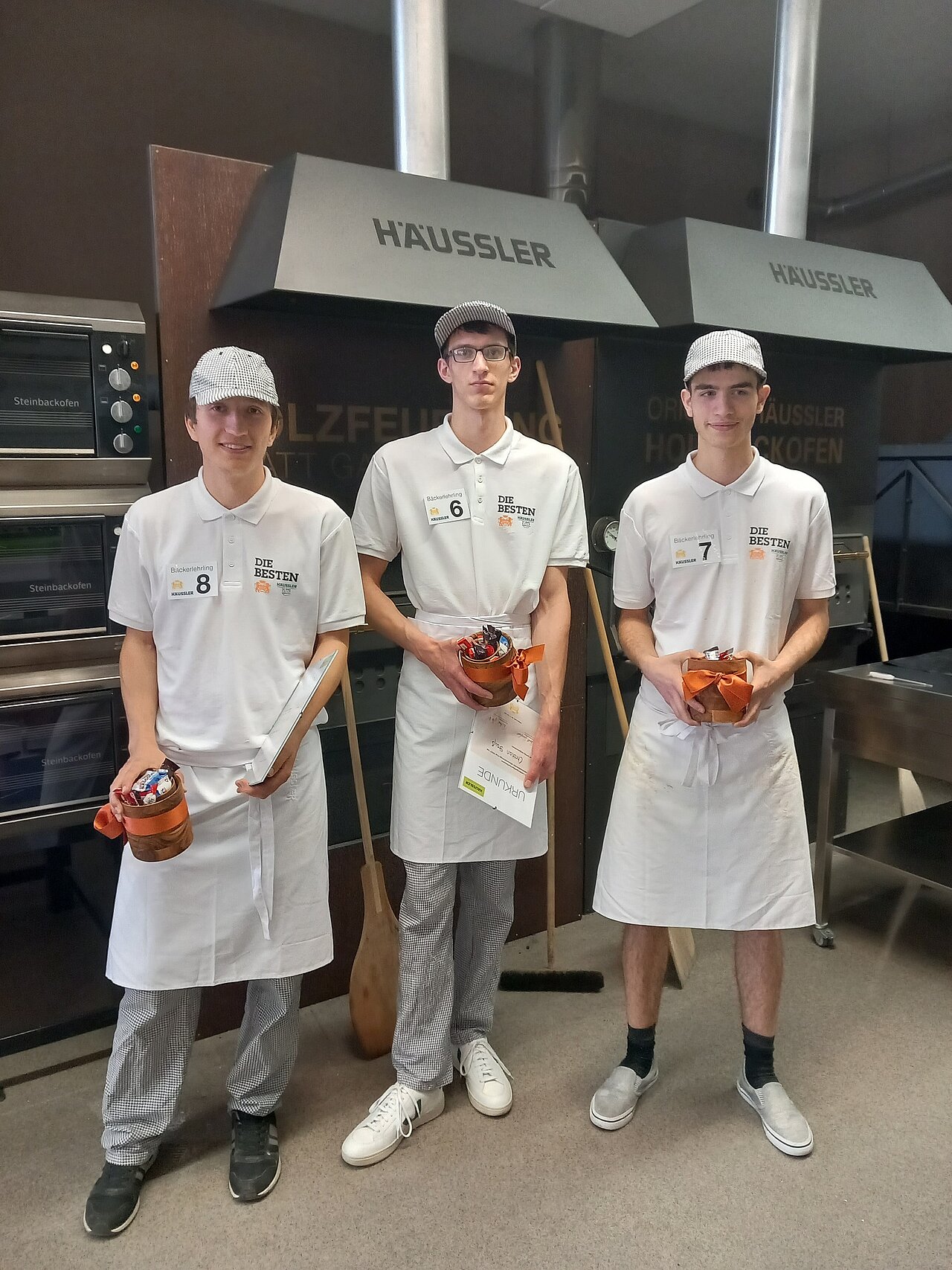 Egolf Schiele (Bäckermeister und Fachlehrer), Oliver Unger (Bäckermeister aus Altheim) und Günter Lutz (Bäckermeister und Fachlehrer in der Bertha-Benz-Schule) bildeten die Jury und bewerteten die Backergebnisse. Joel Hertzler, Simon Luib und Cristian Stauß von Bertha-Benz-Schule belegten die Plätze 6 bis 8.