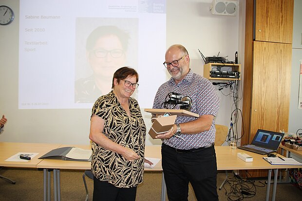Sabine Baumann kam 2010 von Riedlingen mit den Fächern Textilarbeit und Sport an die Sibylla-Merian-Schule. Der Schwerpunkt ihrer Arbeit lag in der zweijährigen Berufsfachschule und in der Fachschule für Sozialpädagogik. Besonders lag ihr immer die sportliche Bewegung der jungen Menschen am Herzen. Über den Sportunterricht hinaus lebte sie diese Überzeugung in ihrem ehrenamtlichen Engagement als Kampfrichterin beim Turnen und bei Jugend trainiert für Olympia.