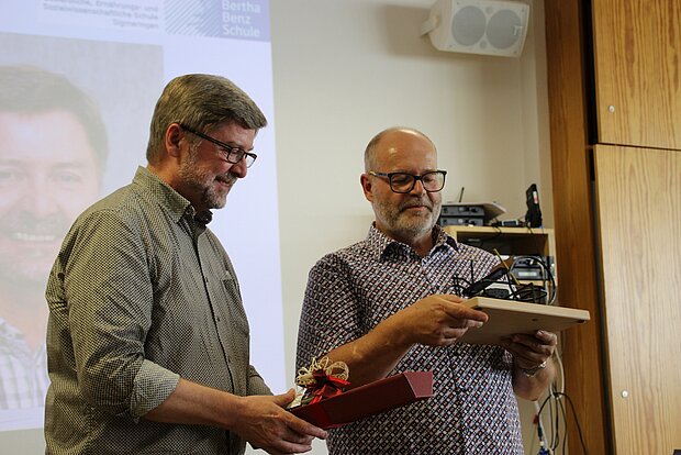 Das Herz von Helmut Erath schlug seit 2002 in der Holzabteilung der Bertha-Benz-Schule. Mit innovativen Projekten, die einen manchmal regelrecht Holzklötze staunen ließen, vermittelte er vielen Auszubildenden die Faszination des Werkstoffes Holz. Immer wieder beeindruckend war bei der Ausstellung der Gesellenstücke, welche handwerklichen Fähigkeiten Helmut Erath den jungen Erwachsenen in ihrer dreijährigen Ausbildung beibrachte.