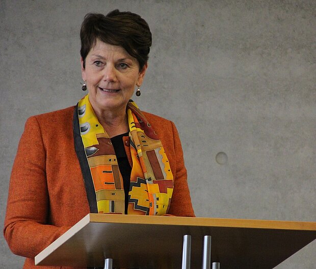 Den optimistischen Blick in die Zukunft der Schule teilt die Abteilungspräsidentin des Regierungspräsidiums vorbehaltslos. „Stillstand ist nicht sein Ding“, stellte Dr. Susanne Pacher fest und mit seinem Pragmatismus, seiner Bodenständigkeit, aber vor allem auch seiner Flexibilität, denke er alles, was er angehe, vom Anfang bis zum Ende. Als leidenschaftlicher Imker habe Frick viel von den Bienen gelernt. Wichtig dabei vor allem, dass die Bienenkönigin nur dann die volle Unterstützung ihrer Bienen bekommt, wenn sie ihre eigenen Aufgaben immer im Dienste der Allgemeinheit erledigt. Und wie die Bienenkönigin, erfülle Ottmar Frick seine Aufgaben mit viel Selbstbewusstsein, aber gleichzeitig mit der notwendigen Demut, die Grenzen seines Wissens und seiner Möglichkeiten einschätzen zu können, lobte Pacher die Arbeitsweise des neuen Schulleiters.