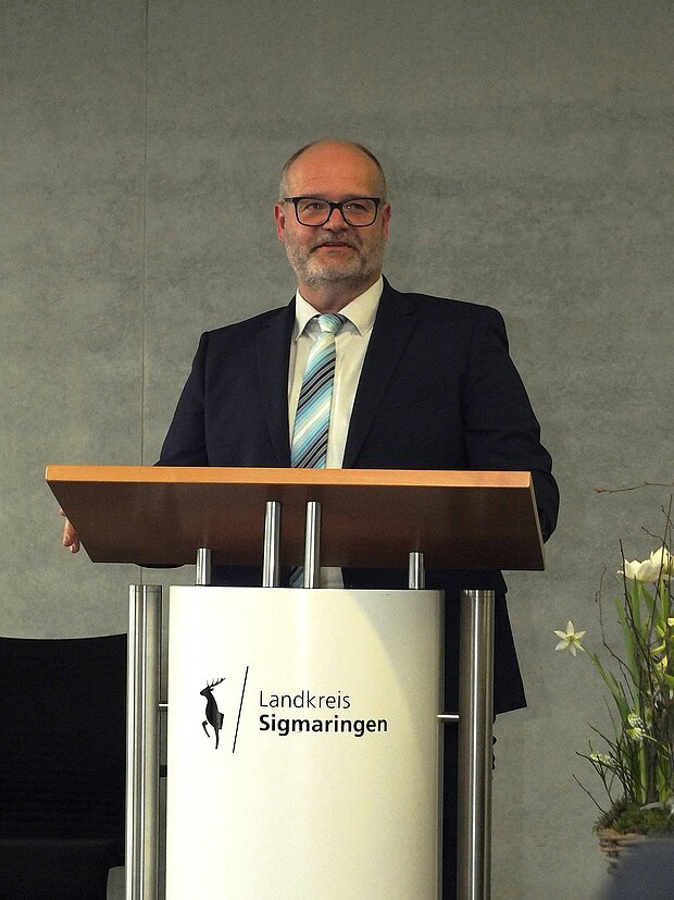 Als eine große Ehre sieht Ottmar Frick für sich die Einsetzung als Schulleiter der Bertha-Benz-Schule. Die Tragweite dieser Funktion sei ihm bewusst und er werde, wie schon als stellvertretender Schulleiter, mit vollem Einsatz für die Zukunft der Schule arbeiten, betonte Frick, denn „Bildung ist kein Schnäppchen, sie muss jeden Tag neu und hart erarbeitet werden.“ Harte Arbeit für die Bildung könne aber nur erfolgreich sein, wenn alle am Schulleben Beteiligten eng und konstruktiv zusammenarbeiten. Dr. Susanne Pachers Einschätzung, dass Frick viel von den Bienen gelernt habe, bestätigte er in seiner Rede. Er betonte aber nicht die Rolle der Bienenkönigin für erfolgversprechende Arbeit, sondern die Bedeutung des Schwarms, der Großartiges leisten kann, wenn sich die einzelnen Individuen gegenseitig vertrauen und gemeinsam das Wohl der Gemeinschaft über das eigene stellen. „Ich möchte im Schwarm mit Ihnen zusammenarbeiten. Trauen Sie mir etwas zu, ich traue Ihnen etwas zu.“, appellierte Frick an alle seine Partner der Zusammenarbeit. So seien die Herausforderungen der nächsten Jahre zu meistern. Allen voran der Neubau der Schule, für den der Landkreis viel Geld in die Hand nimmt, um die Rahmenbedingungen für einen optimalen Bildungsort zu schaffen. Mit einer weiteren intensiven Zusammenarbeit zwischen dem Schulträger und allen am Schulleben der Bertha-Benz-Schule Beteiligten, werde die Schule ein Ort sein, an dem Schülerinnen und Schüler gefördert und unterstützt werden und die Fachkräfte von morgen das Rüstzeug für Ihren Beruf erhalten. Ottmar Frick dankte an dieser Stelle Stefanie Bürkle, die den wichtigen Schritt des Neubaus angestoßen und in allen Gremien weiterverfolgt und konsequent umgesetzt habe.