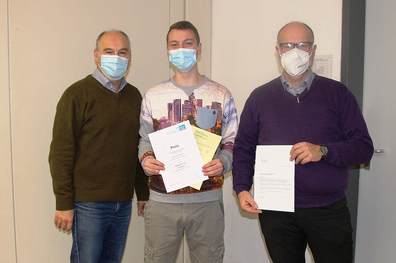 Bei der Winterabschlussprüfung haben 125 Schülerinnen und Schüler an der Bertha-Benz-Schule den schulischen Teil ihrer Berufsausbildung in der Bau-, KFZ-, Farb-, Elektro- und Metalltechnik sowie in der Ernährungsabteilung erfolgreich abgeschlossen. In diesem Jahr erfolgte die Übergabe der Abschlusszeugnisse, Belobigungen und Preise im kleinen Rahmen durch die Klassenlehrer. 18 Absolventen wurden mit einer Belobigung ausgezeichnet und neun Auszubildende erhielten für ihre Leistung einen Preis. Den Preis der Landrätin für die beste Leistung aller Auszubildenden bekam der Industriemechaniker Raphael Kernler von seinem Klassenlehrer überreicht.