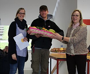 Die Exponate wurden im D-Gebäude der Schule ausgehängt und anschließend von einer Jury bestehend aus den am Schulleben beteiligten Personen bewertet. Kulinarische Leckereien zubereitet von der Zweijährigen Berufsfachschule für Hauswirtschaft und Ernährung unter der Leitung von Fachlehrerin Daniela Lindner erwarteten die Klassen bei der Preisverleihung und so waren natürlich alle gespannt auf ihre Platzierung.