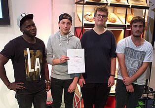 Alexander Brandl, Ousmann Drammeh, Dominic Linich und Karl-Andreas Waimer, Auszubildende im Bäckerhandwerk an der Bertha-Benz-Schule, haben bei der Südback, Süddeutschlands größter Messe für das Bäcker- und Konditorenhandwerk, beim Lehrlingswettbewerb den dritten Platz erreicht.