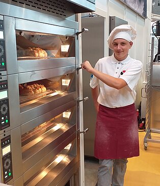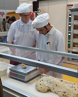 Die Wettbewerbsaufgabe der angehenden Bäcker bestand darin, mit einer eigenen Rezeptur Hefezöpfe zu backen. Innerhalb einer Wettbewerbszeit von 30 Minuten musste der Teig, der vorher vorbereitet werden konnte, abgewogen, aufgearbeitet und geflochten werden und auch die Reinigung der Backstube musste innerhalb dieser Zeit erfolgen. Die besondere Herausforderung bestand dabei darin, mindestens fünf verschiedene Flechtarten anzuwenden. Die Azubis der Bertha-Benz-Schule hielten mit Unterstützung ihres Fachlehrers Günter Lutz dem Zeit- und Leistungsdruck stand und lieferten eine handwerklich überzeugende Arbeit ab. Die kritische Jury, die die Anzahl der hergestellten Zöpfe, die Flechttechnik und die Kreativität der Rezepte bewertete, belohnte die Leistung mit dem dritten Platz beim Wettbewerb.