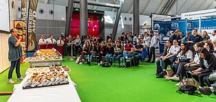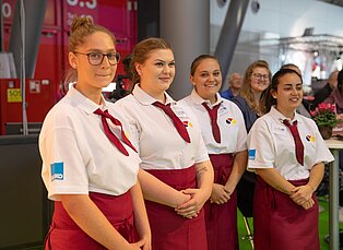 Die Südback ist die größte deutsche Bäckermesse und für Azubis im Bäckerhandwerk hochinteressant. Die Bäckereifachverkäuferinnen der Bertha-Benz-Schule im zweiten und dritten Lehrjahr durften die sechs Messehallen erkunden. Gleichzeitig stellten sich vier ihrer Kolleginnen, Fachverkäuferinnen aus dem dritten Lehrjahr, einem anspruchsvollen Wettbewerb. Für die Wettbewerbe schickten vierzehn Berufsschulen Teams ins Rennen. Jedes Team hatte genügend freien Raum, selbstständig und kreativ an die Wettbewerbsaufgabe heranzugehen.