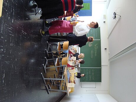 10 Schülerinnen und Schüler der 2 BFH 2 haben unterstützt durch ihre Fachlehrerinnen Margaretha Kleiser und Sigrid Neukum ein Drei-Gänge-Menü für die Lehrer aus elf Partnerschulen, die zum Auftakt des Comenius-Projektes nach Sigmaringen gekommen sind, gekocht und serviert.